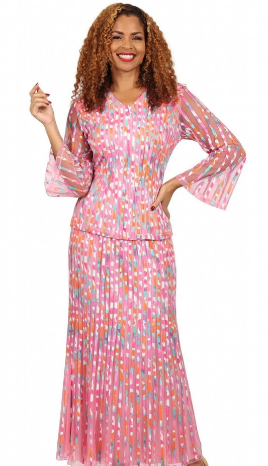 Terramina: Terramina church suits are admired for blending classic elegance with head-turning designs. This brand frequently uses bold color combinations and unique patterns (like color-blocking or floral jacquards) in its suits. Terramina jackets might feature distinctive silhouettes – such as flared ruffle hems, asymmetrical closures, or embellished collars – which make the outfits memorable. Women who want a fashion-forward look that still respects tradition often turn to Terramina.