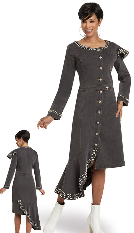 - Embellished Stretch Denim Dress:- This dress contains more embellishments, such beads and sequins, than the Premium Stretch Denim Women's Church Dress.