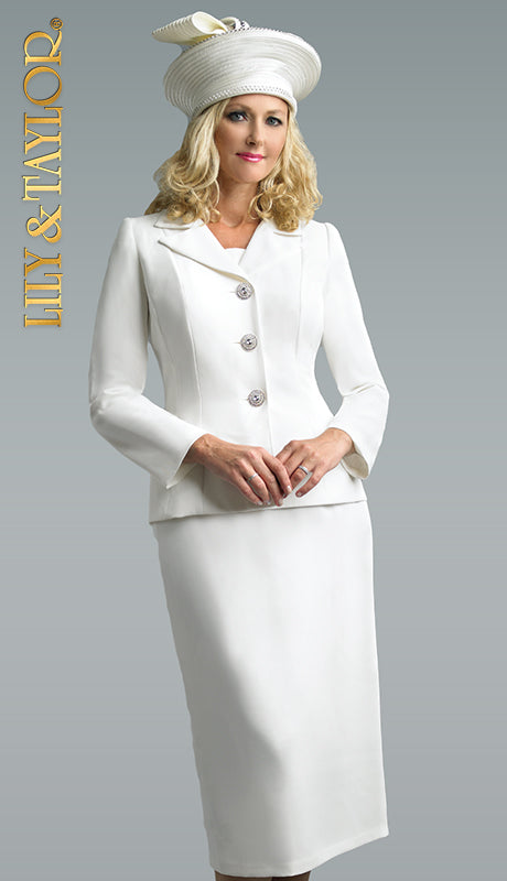 Lily And Taylor 3895-WHT Church Suit - Hat