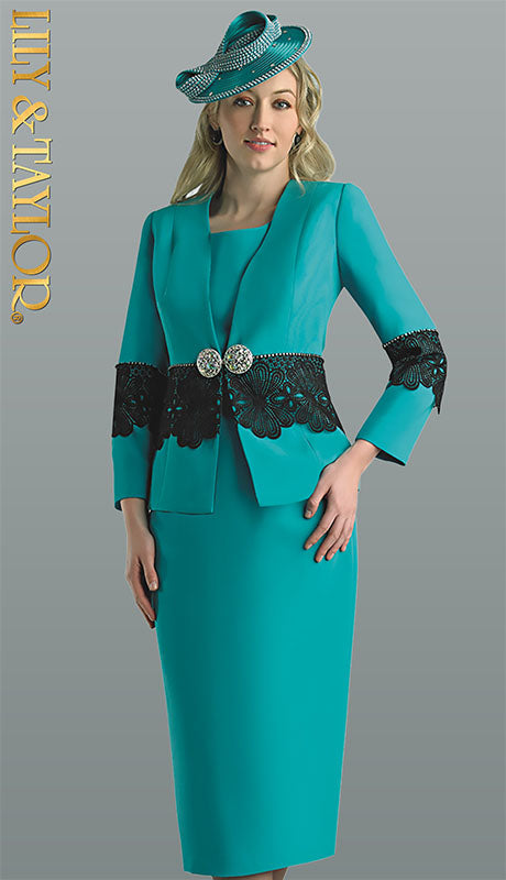 Lily And Taylor 4636-TEAL Designer Church Suit