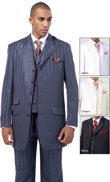 Perfectly suited for formal occasions, business meetings, or that special day, the 28101-B pinstripe suit delivers a look that's both professional and fashion-forward. Tailored to fit the modern man, the suit includes a flattering vest and trousers that complete the ensemble. For a truly personalized touch, accessorize with your favorite shirt and tie combination to exude confidence and charisma wherever you go.