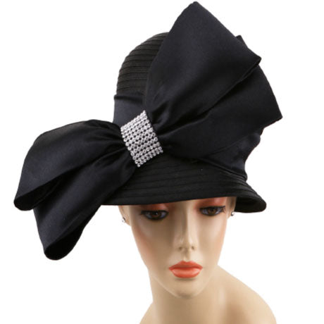 Designed with a balance of comfort and fashion in mind, the 8929 Church Hat sits comfortably atop the head, securing its position without being tight or restrictive. Attention to detail is evident in every stitch and seam. The hat boasts a large, stylish bow, artistically positioned to add a touch of whimsy and charm. The focal point is the tasteful rhinestone embellishment which captures the light, creating a subtle yet captivating sparkle that is sure to turn heads.