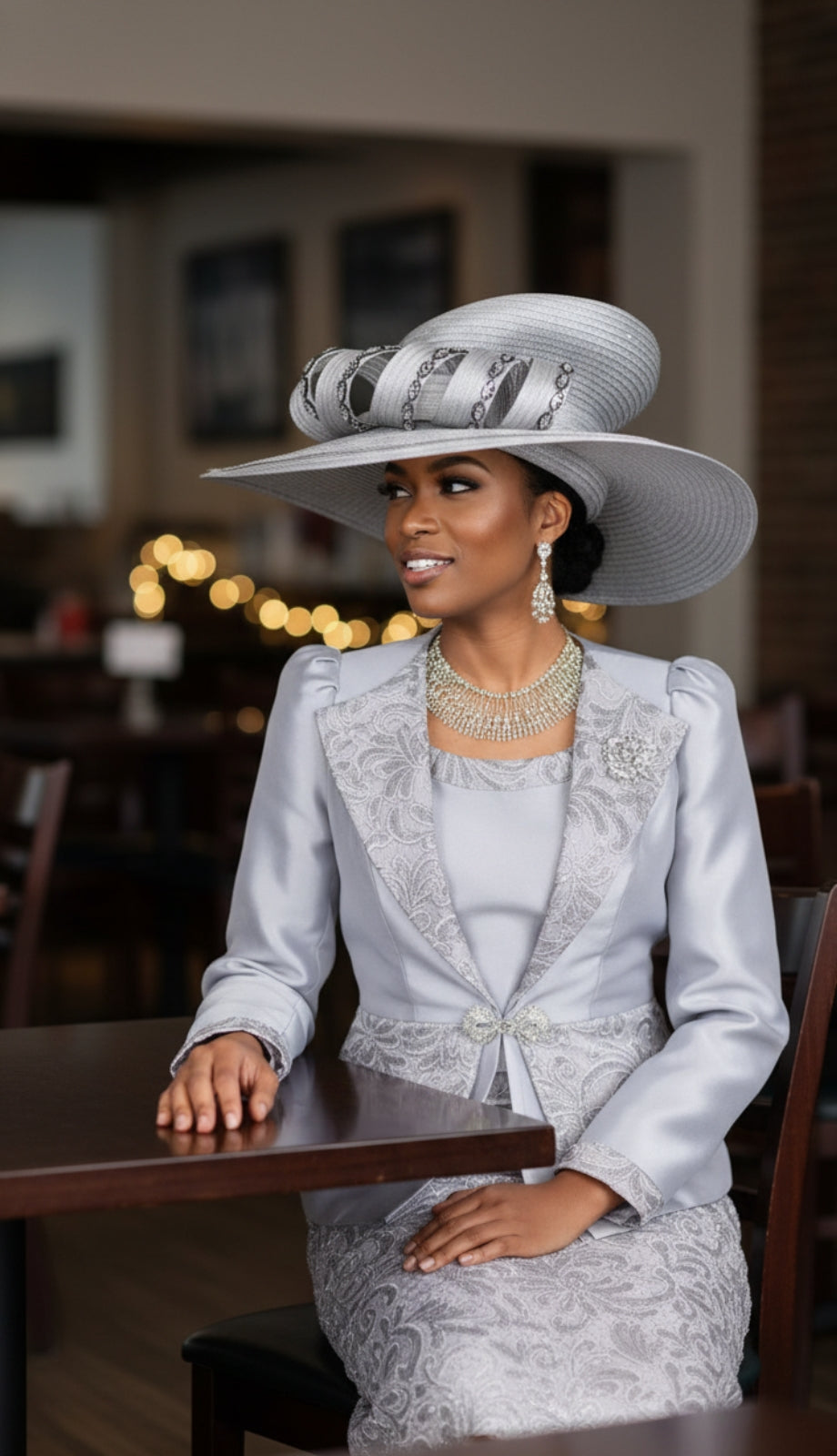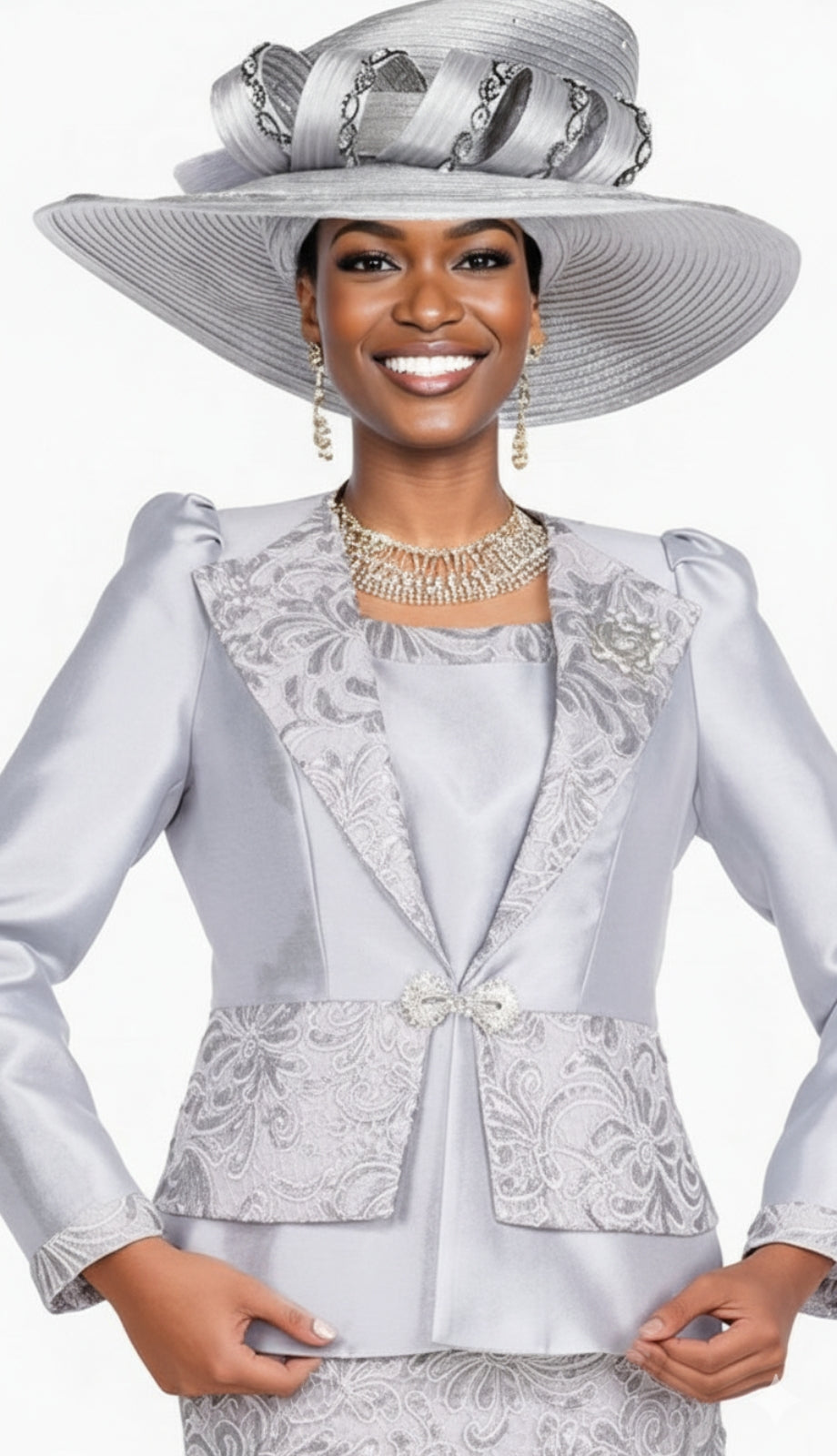 • 3pc Silk Womens Church Suit With Rhinestone Clasp