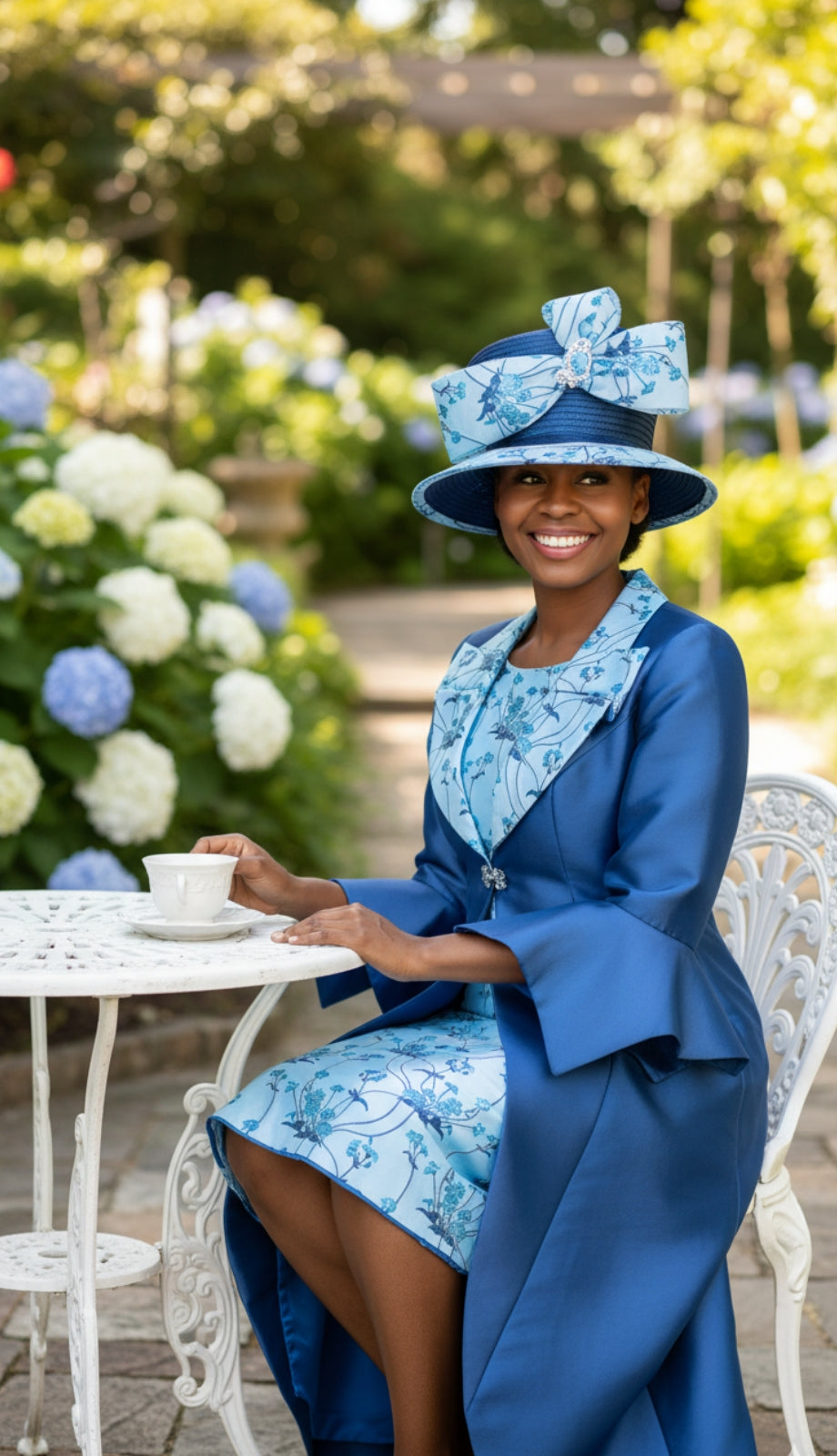 Among the dress's striking features are its flattering cut and the distinctive sleeve design that adds a touch of modernity to the overall classic look. The design reflects a fusion of traditional charm and contemporary fashion sensibilities, suitable for a variety of church events, ceremonial gatherings, and social functions. This garment is about merging the timeless beauty of floral motifs with modern-day stylishness, making it not just a dress, but a statement piece that resonates with elegance.