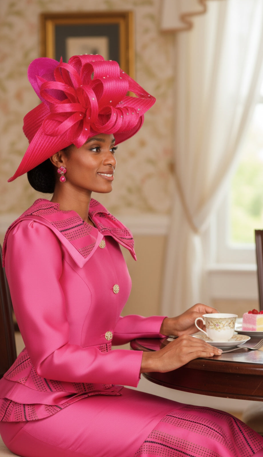Complementing the jacket is a beautifully cut skirt that continues the theme of sophistication. The skirt's design features a fluid line that skims the body, culminating in a playful ruffle at the hem, adding a dash of charm and movement to the ensemble. This stunning pairing is versatile enough for various settings, from church services to elegant social gatherings, making it a must-have addition to any wardrobe.