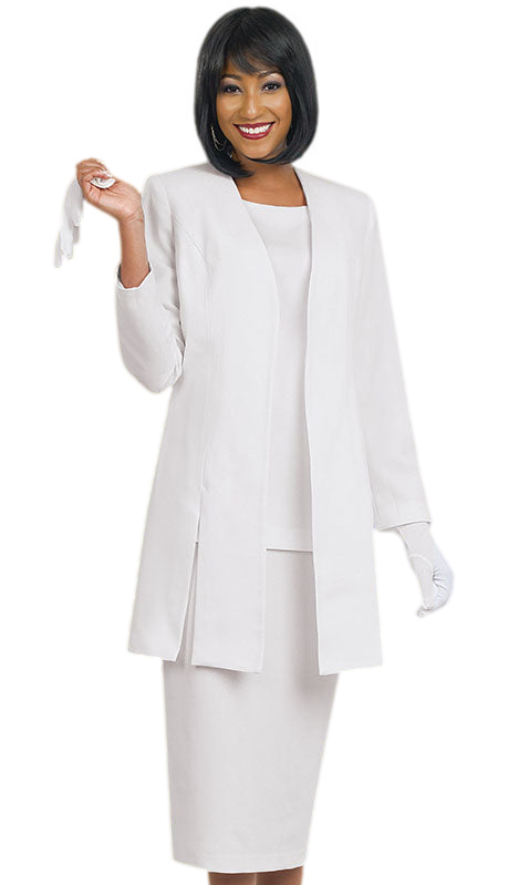 The suit features a stylish, long-line jacket that offers a modern take on formal attire. With its clean lines and collarless design, the jacket makes a statement of understated elegance. The matching knee-length skirt maintains the sleek and feminine silhouette, ensuring you look polished and poised for any church-related event or formal gathering. Despite its structured design, the suit allows for comfortable movement, making it perfect for all-day wear.