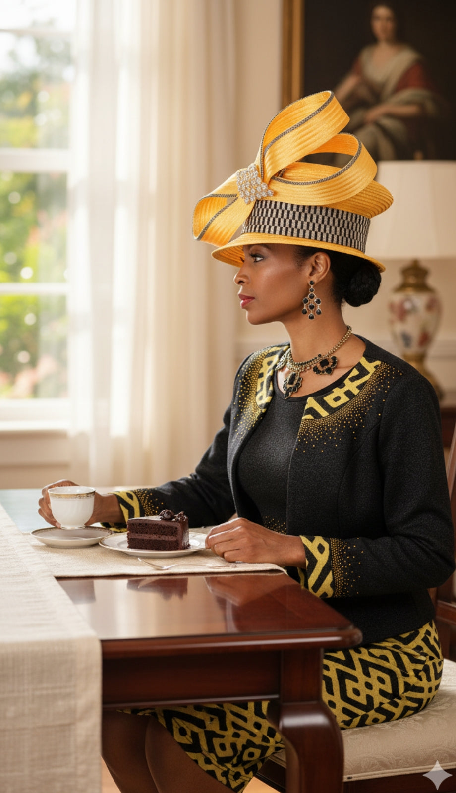 With its captivating black and yellow color scheme, this suit is perfect for church events, family gatherings, or any formal occasion. The meticulous detailing on the jacket adds a touch of sophistication, making it a standout piece that draws admiration.