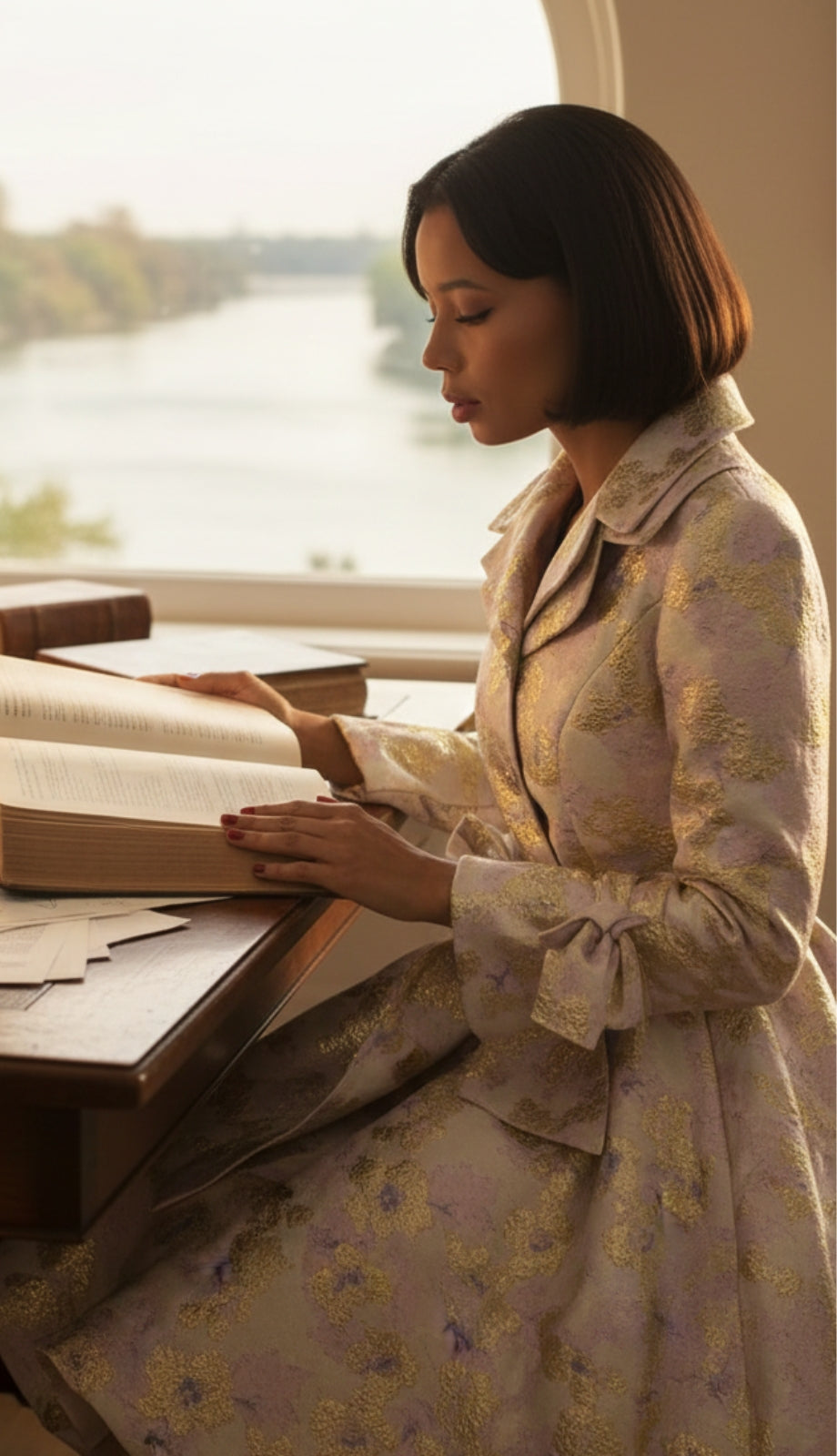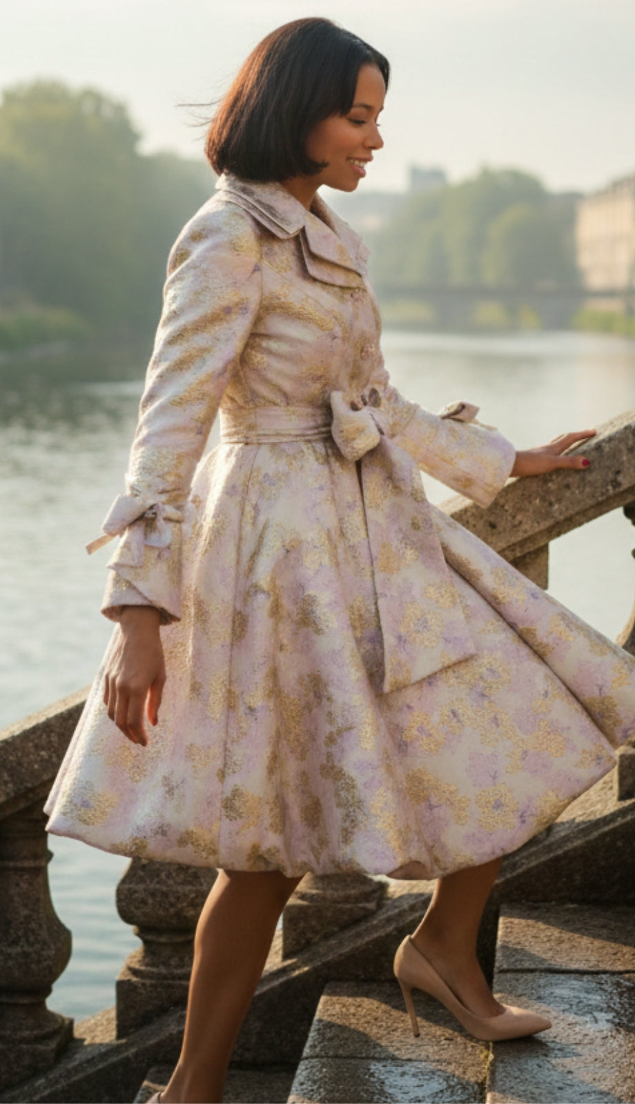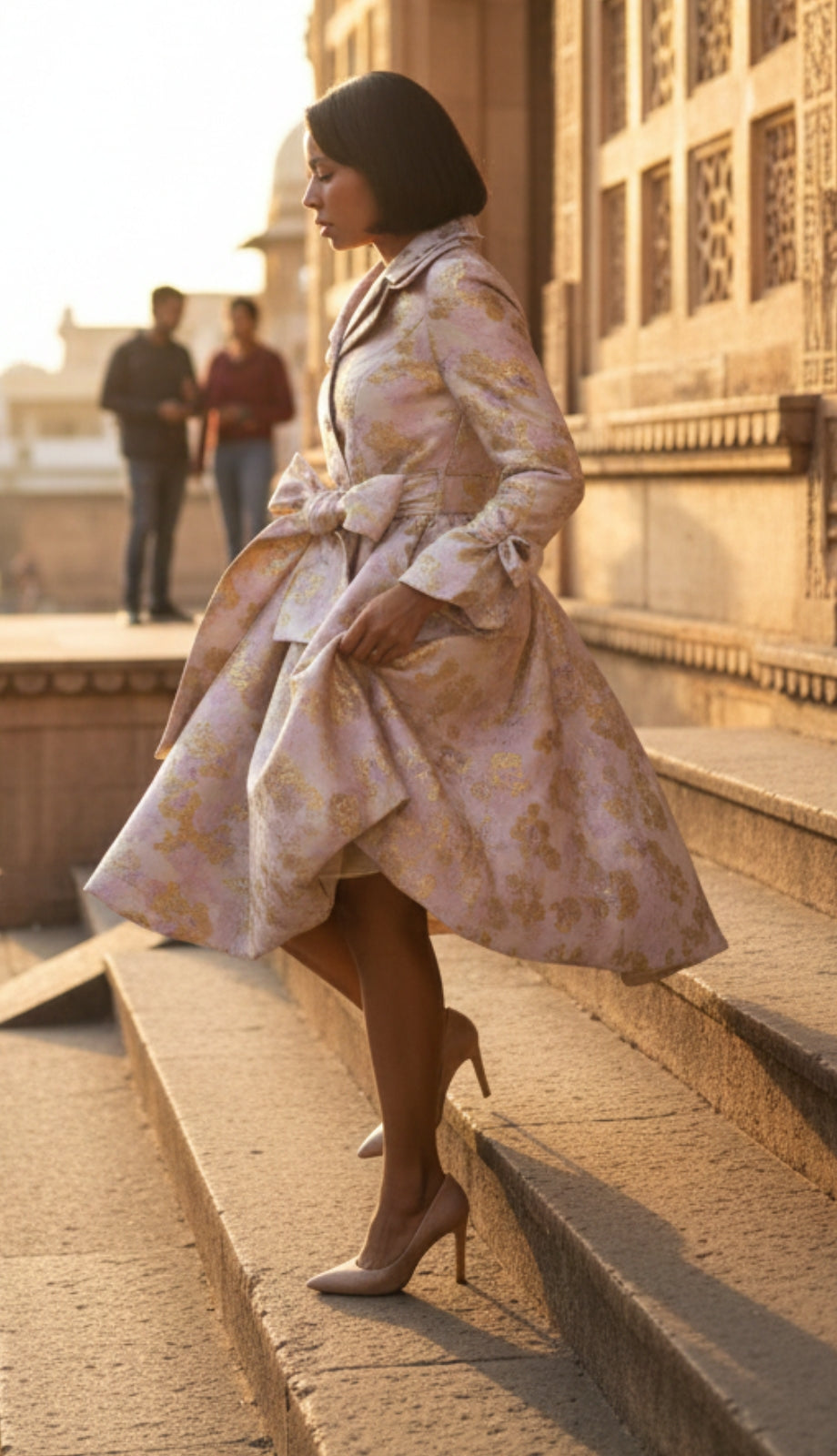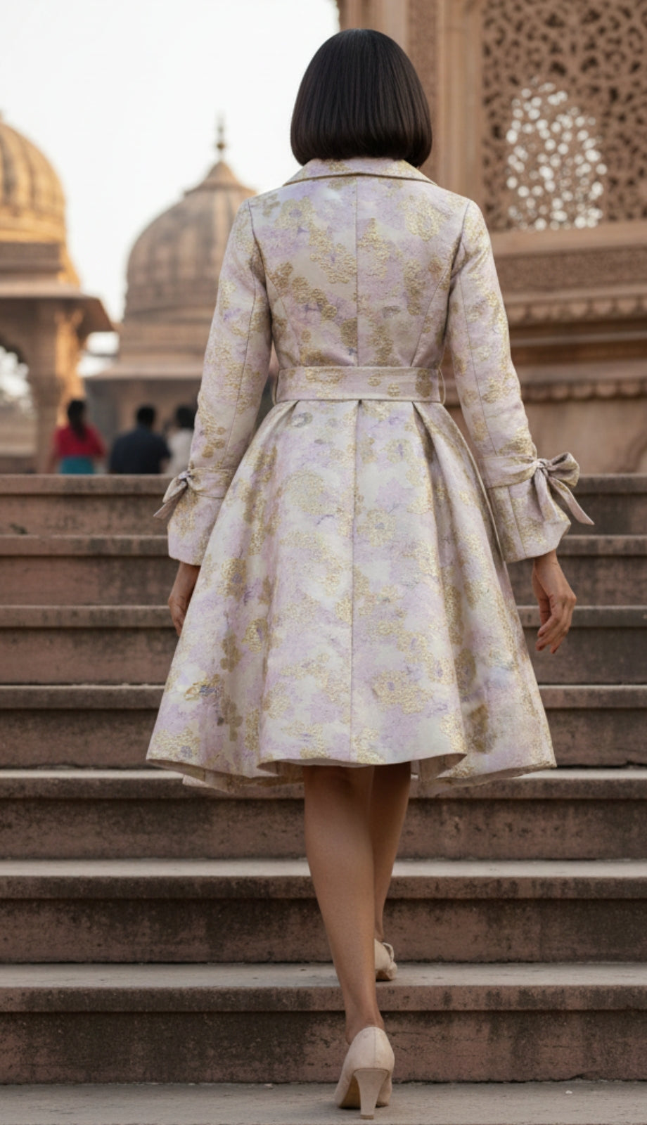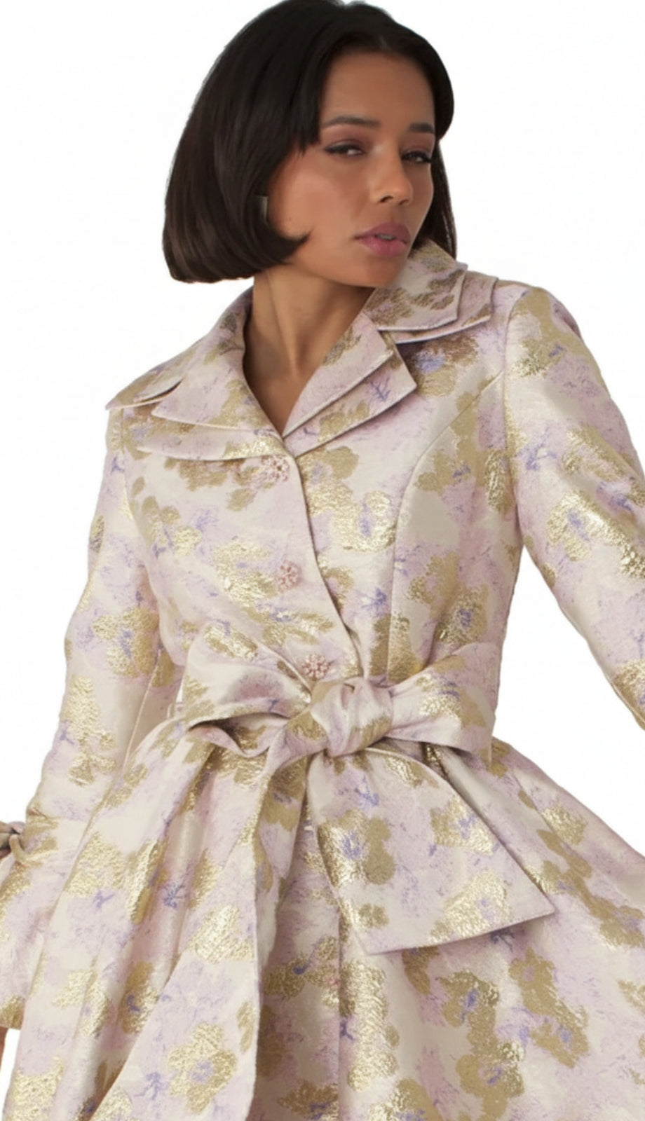 - 1pc Coat Dress With A Gorgeous Jacquard Weave With Metallic Golden Design That Weave Perfectly With The Blush Color Of the Dress