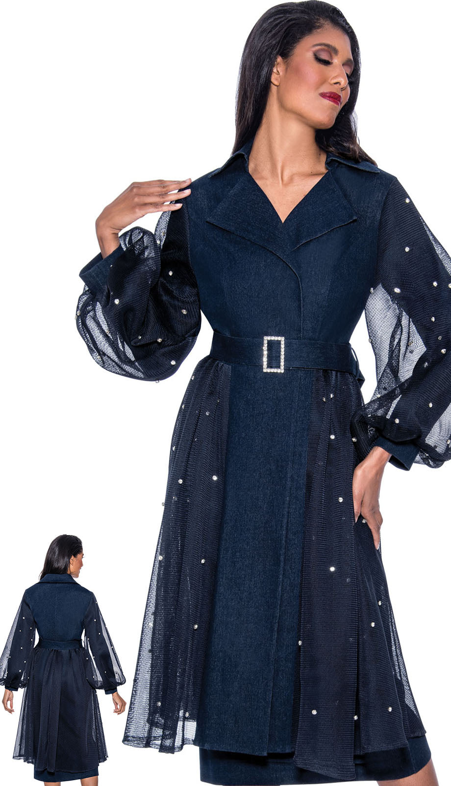 Finishing off the design are evenly spaced, sparkling accents across the dress that catch the light beautifully, ensuring you shine with understated elegance. Whether you're attending a church gathering, a formal brunch, or a charity event, the Devine Sport 63982-QS Church Dress is a harmonious blend of classic style and contemporary fashion. This dress is a true testament to high-quality design and timeless appeal.
