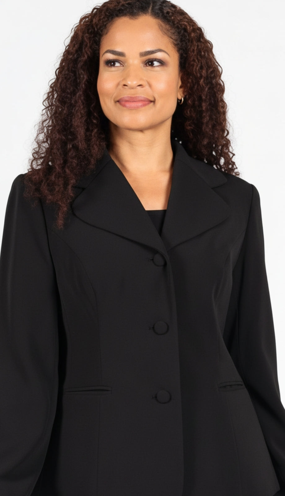 The classic black color of the suit makes it incredibly versatile, offering the perfect backdrop for any accessories you choose to pair with it. Whether dressing it up with jewelry or keeping it simple, this suit will complement your personal style effortlessly. Available in a range of sizes, the Diana Couture 8748-BLK ensures that every woman can find her perfect fit, making it a must-have for your collection.