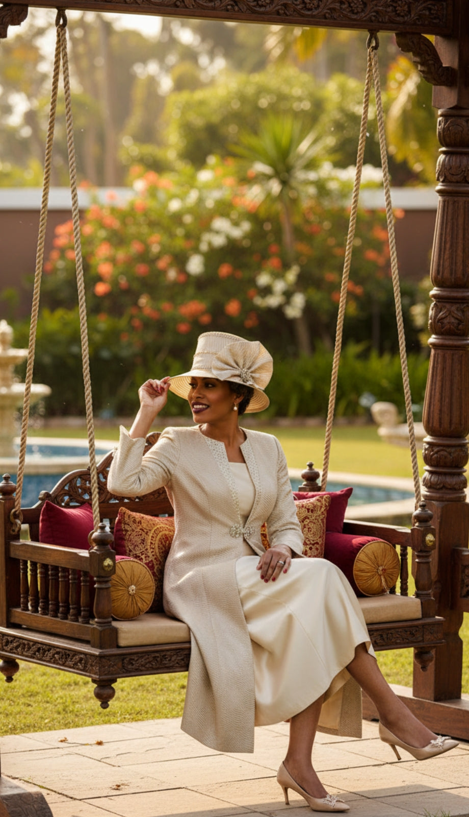 The three-quarter sleeve design offers modest coverage while lending an air of timeless grace, and the breathable lining ensures comfort throughout the day. The Divine Queen 2352 is an impeccable choice for church gatherings, weddings, or any social event where making a lasting impression is key.