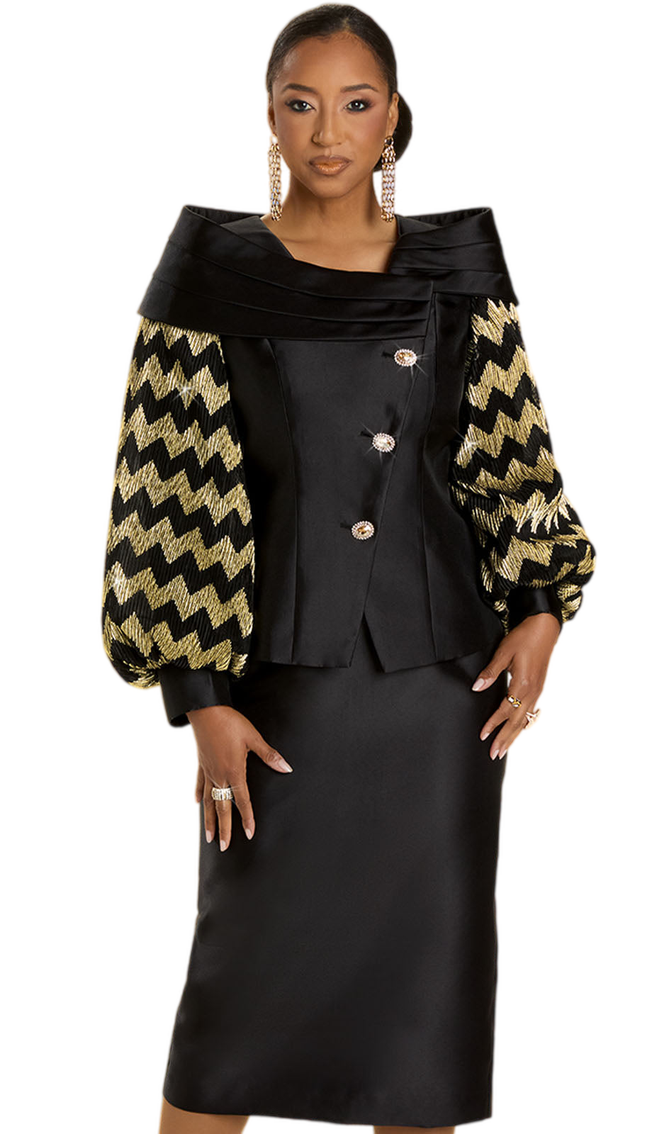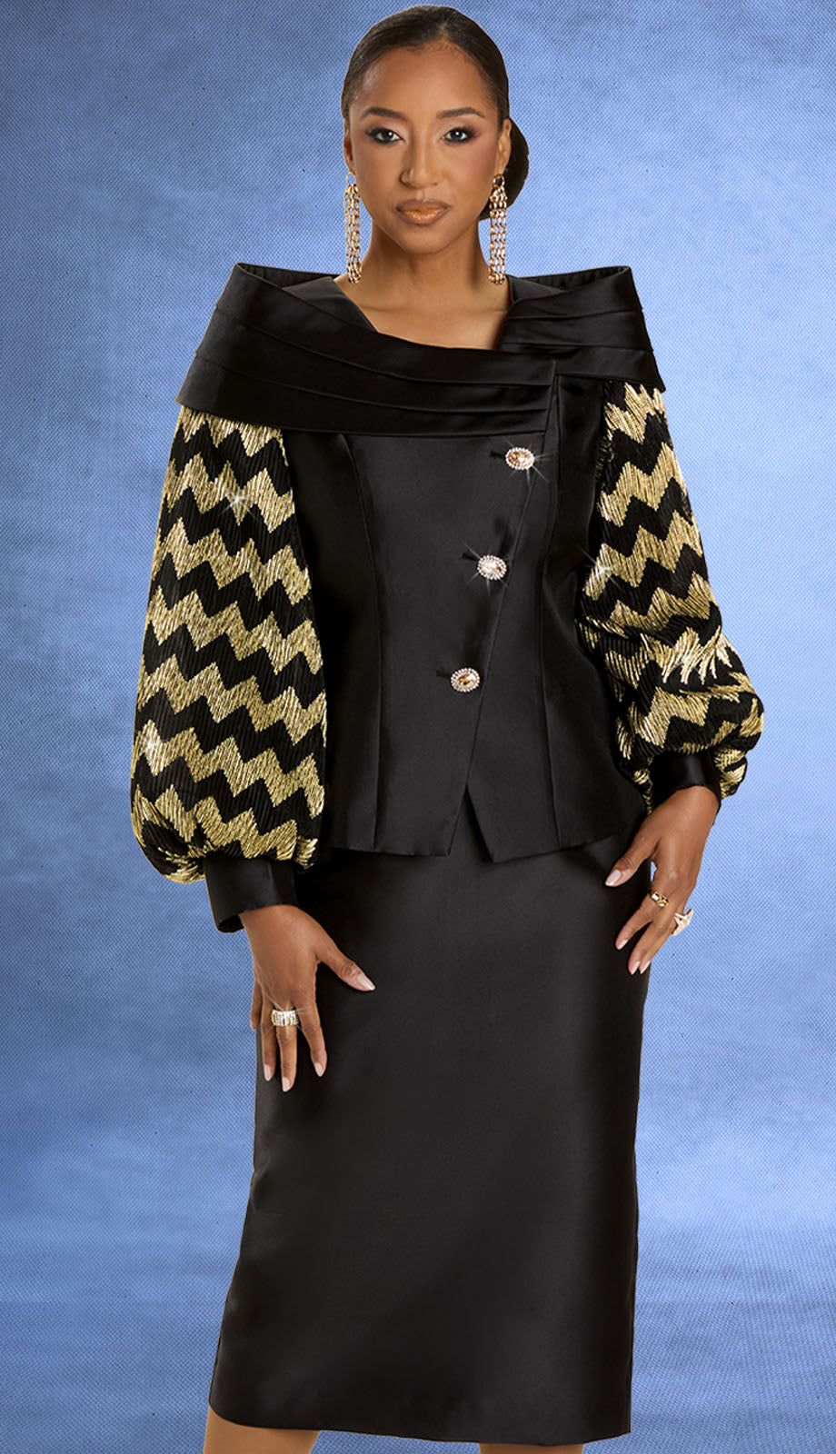 The Donna Vinci 12123 Church Suit is a testament to elegance and timeless style. This exquisite two-piece suit has been meticulously designed to provide both comfort and sophistication for any formal occasion. The suit's top features an eye-catching pattern that exudes a sense of luxury and finesse, making it a standout piece in any wardrobe.