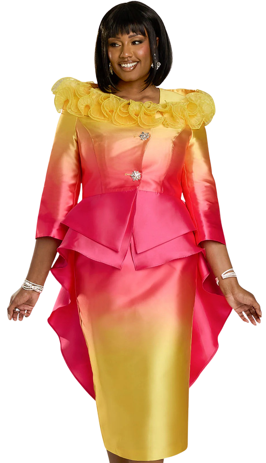 The Donna Vinci 12154-IH Church Suit is the epitome of elegance and sophistication. Crafted from high-quality fabric, this suit is designed to provide both comfort and style, making it an ideal choice for any special event or church service. The fabric is not only luxurious to the touch but also durable, ensuring that you look great and feel confident regardless of the occasion.