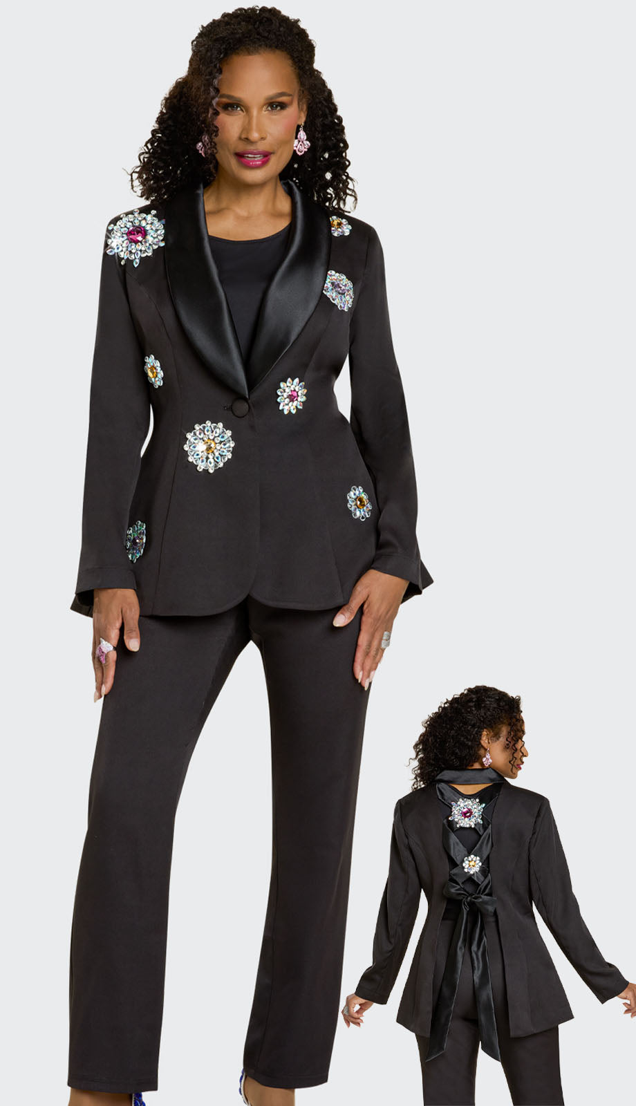 Additionally, the Donna Vinci 12243 is available in multiple sizes, making it accessible for all women to enjoy. With easy care instructions, this pant suit is not only stylish but also practical, allowing you to maintain your look without the hassle. Elevate your wardrobe with this exquisite pant suit that blends timeless style with modern convenience.