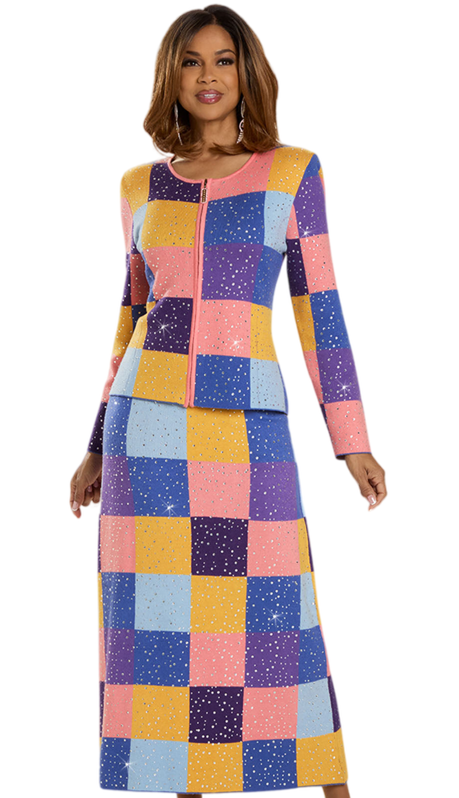 The exclusive color-block design of this church suit sets it apart, featuring a captivating array of hues that will make you stand out in any crowd. The sophisticated round neckline pairs seamlessly with the form-fitting silhouette, carefully tailored to enhance your natural figure while offering maximum comfort. Whether you're attending a religious ceremony, a formal event, or a professional gathering, this suit radiates an aura of confidence and poise.