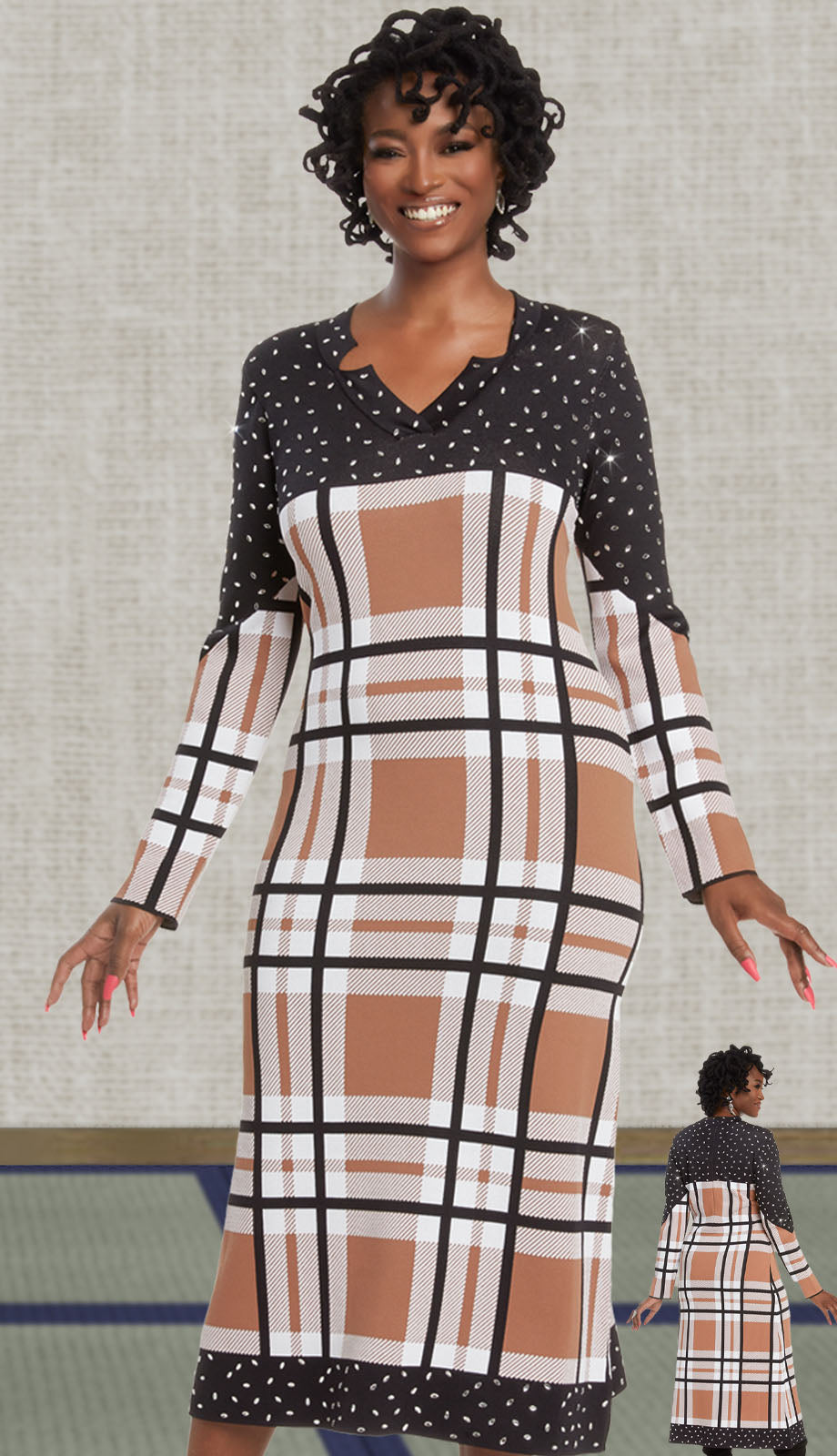 The Donna Vinci Knit 13396-QS Church Dress is the epitome of elegance and style. This beautifully designed dress features a unique combination of plaid and polka dot patterns, making it a standout choice for any formal occasion. Whether attending a church service or a special event, you will feel confident and fashionable.