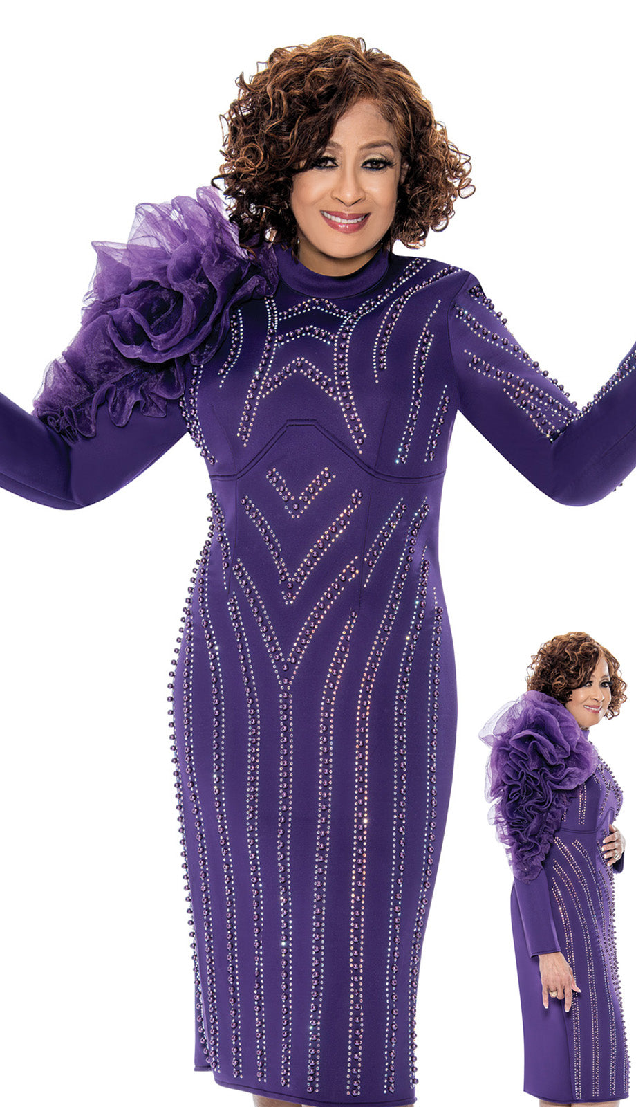 The Dorinda Clark Cole 309161-PUR-QS Ladies Church Dress is the perfect blend of style and sophistication. Designed with the modern woman in mind, this dress is ideal for both church service and special occasions. Its vibrant purple hue adds a touch of boldness, ensuring you make an entrance wherever you go.