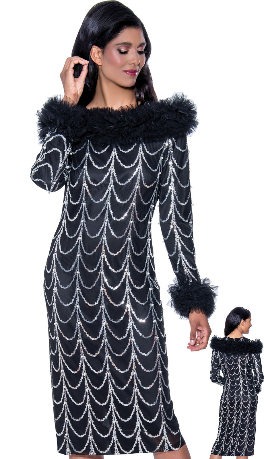 Completing the look is a glamorous feather trim gracing the neckline and cuffs, adding a luxurious and current touch to the dress's overall presentation. The feathers provide a contrasting texture that's both visually appealing and delightful to the touch. This detail ensures your presence is felt and remembered, whether at church, a wedding, or any upscale gathering. Crafted from high-quality fabric, this dress promises to maintain its shape and luster through many occasions, representing not just a purchase but an investment into your wardrobe. With the Dorinda Clark Cole 309271 Ladies Church Dress, step into a world where elegance meets contemporary fashion trends, and where every occasion is an opportunity to shine.