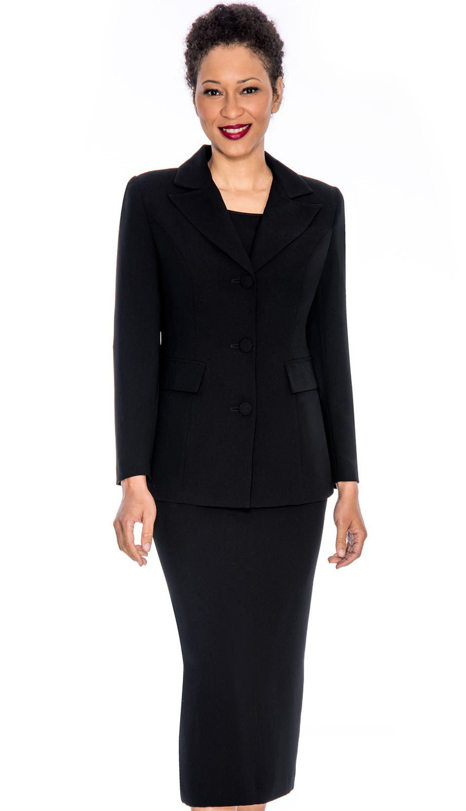 Constructed from high-quality materials, the Giovanna 0655-BLK ensures comfort and durability. The blazer features a notched lapel, three-button front closure, and functional pockets, adding a touch of refinement to your ensemble. The pencil skirt is designed to hug the curves while providing ease of movement, making it a practical yet stylish choice.