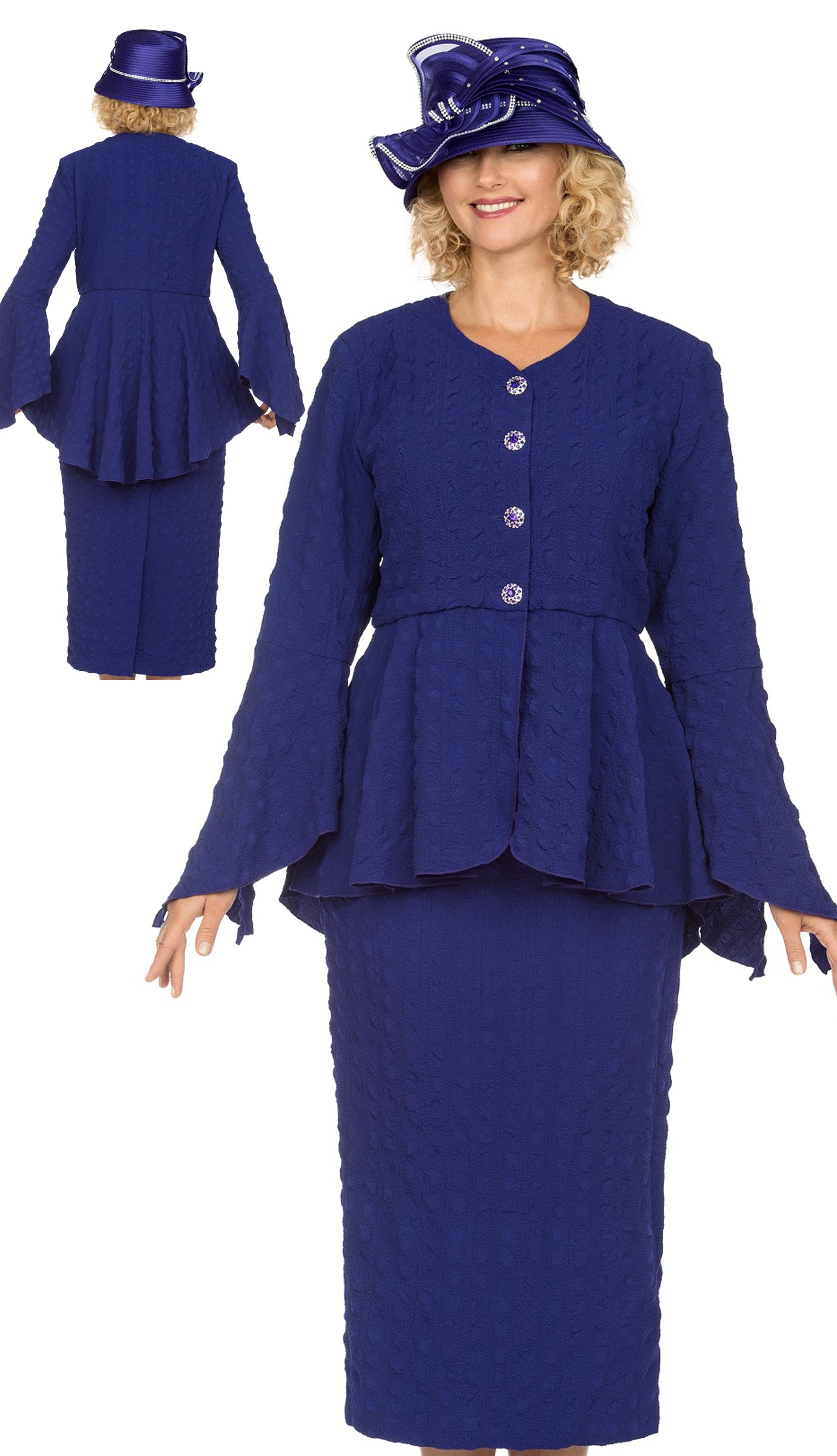 The knee-length skirt maintains a classic cut, ensuring ease of movement while preserving a sleek profile. This essential piece complements the jacket, offering a balanced look suitable for various events. The extended sleeve cuffs adorn slit details, which add a modern twist to the traditional church suit attire. Whether you're attending a church service, participating in a choir, or present at a community event, the Giovanna 0944-P Church Suit is designed to make you feel confident and look your best.