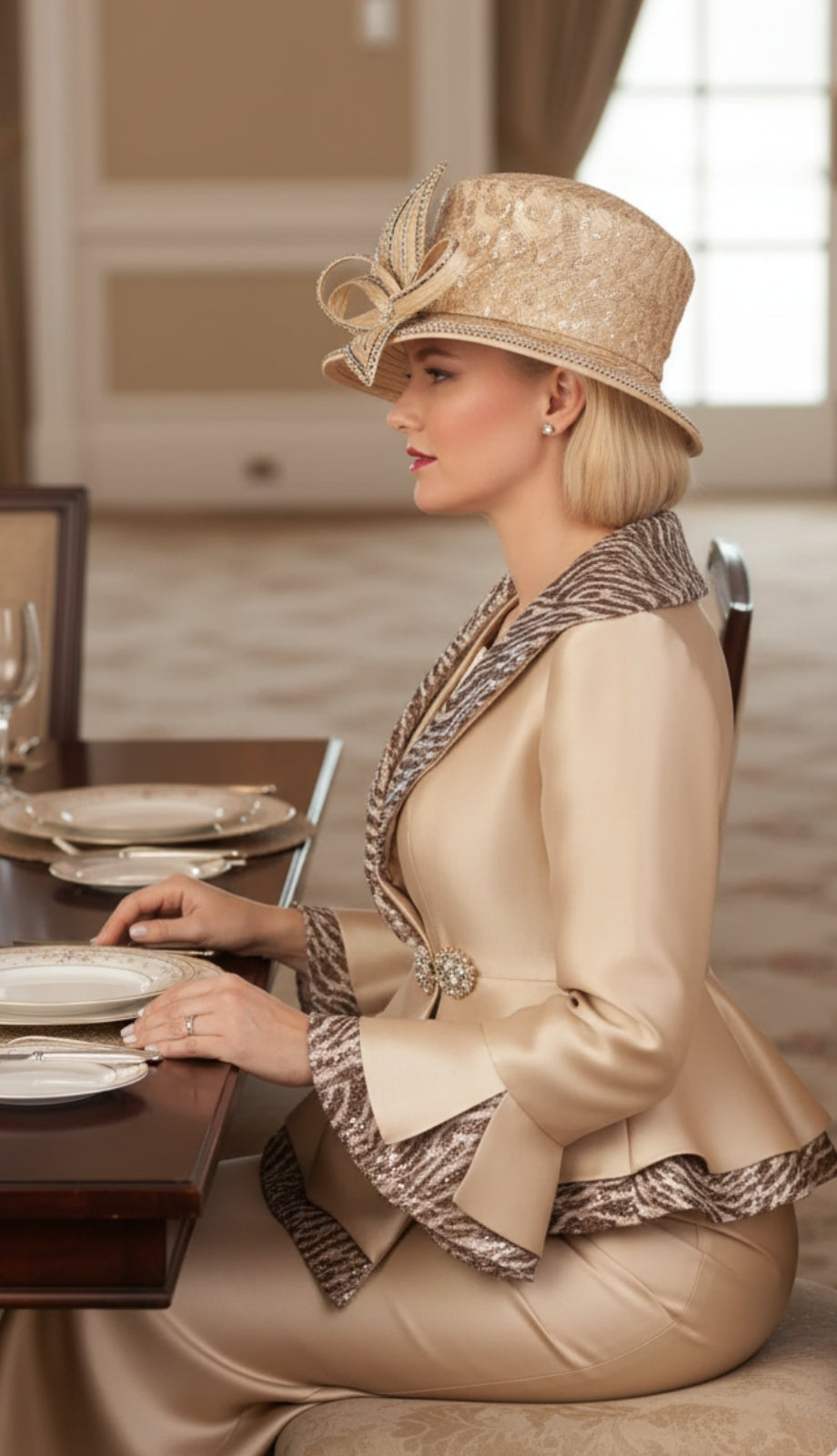 Discover the epitome of class with the Giovanna 1203-CHM Church Suit, a garment designed for the woman who appreciates sophistication and timeless elegance. This suit is a masterpiece that exudes confidence and grace, perfect for making a lasting impression at any formal event or place of worship.