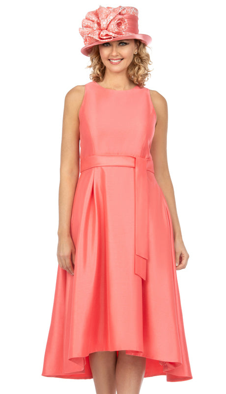 Moving down, the A-line skirt part of the dress cascades fluidly to a modest midi length, granting you freedom of movement and comfort without compromising style. Whether you're attending a church service, participating in a formal event, or attending a sophisticated gathering, the Giovanna D1538-COR Church Dress is sure to make an impression. Its blend of traditional elegance with contemporary styling makes it a versatile choice for your wardrobe. Please note: While the ensemble is complemented by a wide array of accessories, the featured hats are sold separately.