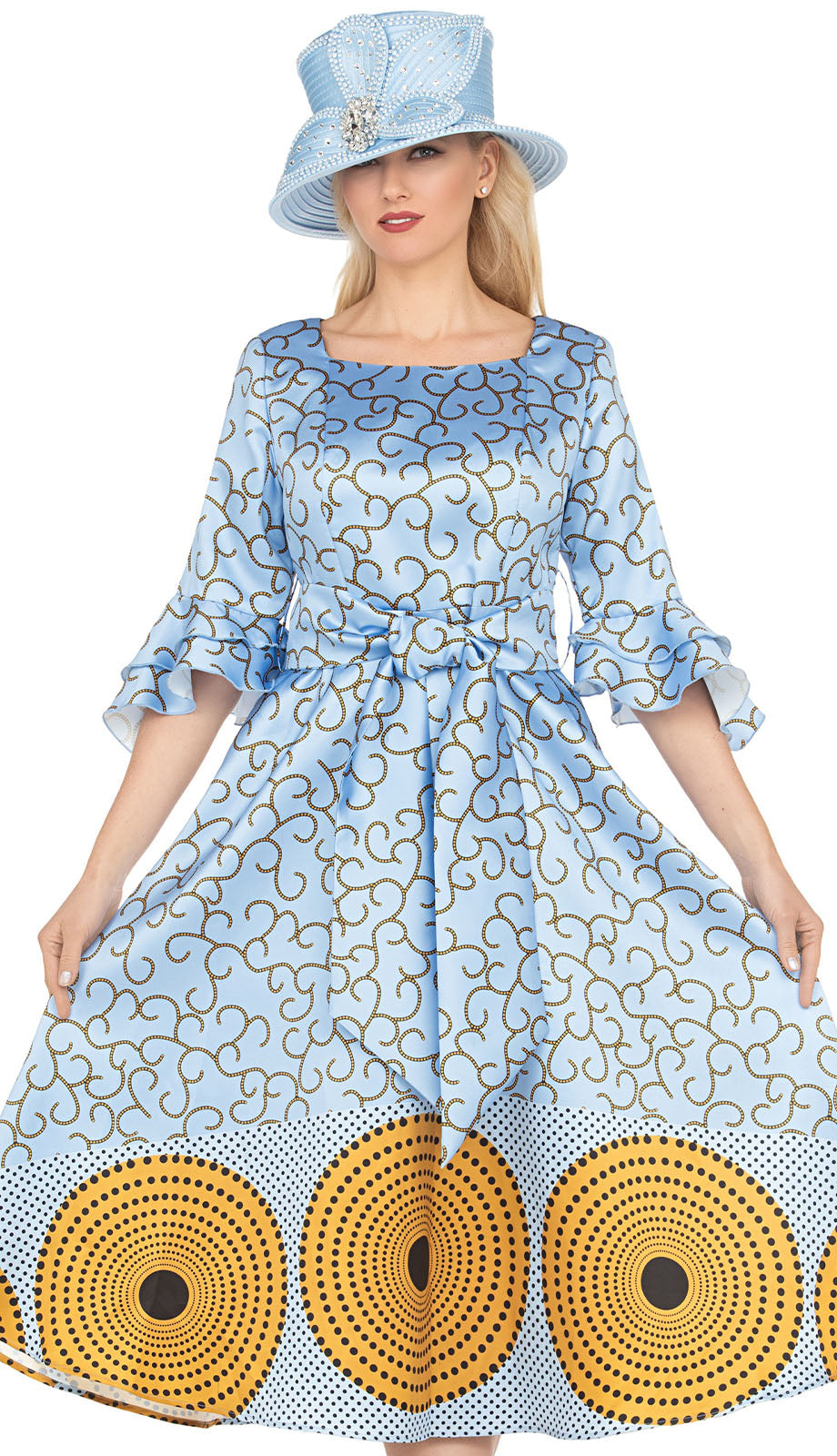 Ideal for church services, weddings, and other formal events, the Giovanna D1587-BLU dress makes a bold fashion statement. Experience the perfect combination of sophistication and comfort, making it a wardrobe essential for any lady who values elegance.