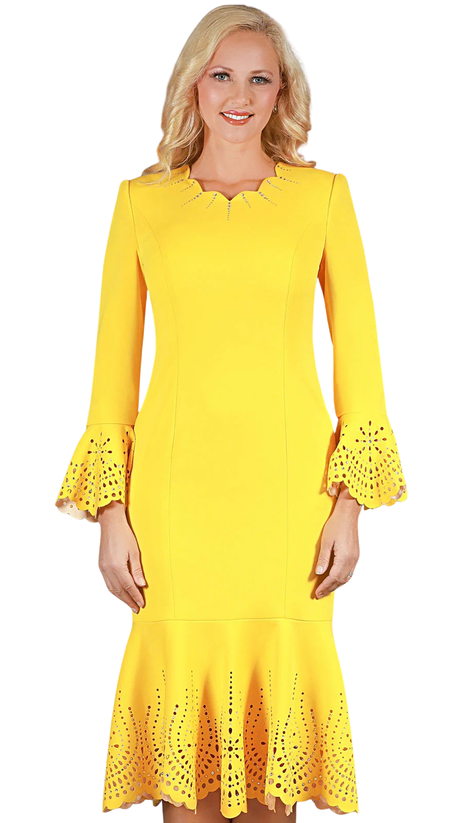 • 1pc Scuba Knit Womens Church Dress With Laser Cut-Out Trim