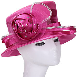 In addition to the impressive design details, this church hat is trimmed with elegant satin ribbons that gracefully wrap around the brim, adding an extra layer of sophistication. Whether you're attending church, a wedding, or any formal gathering, the Giovanna HG1060E-FU Church Hat is the perfect accessory to elevate your ensemble with a touch of class.