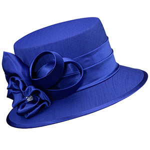 Introducing the exquisite Giovanna HM944-ROY Church Hat, an accessory that promises to accentuate your attire with a touch of elegance and grace. The hat comes in a striking royal blue color, a hue that captures the essence of sophistication and adds a regal touch to your ensemble. Designed with both fashion and function in mind, this hat features a wide brim that gracefully shelters you from the sun's rays.