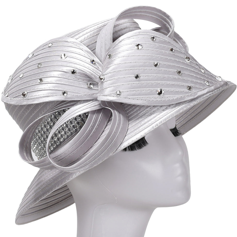 The Giovanna HR1068-SLV Church Hat stands as a testament to timeless style and distinguished elegance. Specifically designed for those who appreciate the finer details, this accessory exudes grace with its luxurious silver hue and carefully placed rhinestone embellishments. Each rhinestone has been meticulously attached, providing a subtle sparkle that catches the light and the eye.