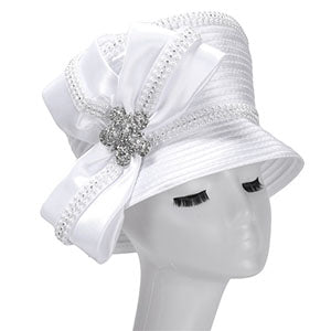 Introducing the exquisite Giovanna HR22112-WHT, a church hat that exudes sophistication and grace. This stunning headpiece is designed to complement your attire on the most special occasions, from religious services to elegant social gatherings. The hat's pristine white color offers the versatility to match a wide variety of color palettes, making it an essential addition to any refined wardrobe.