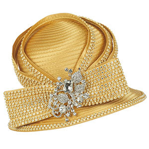 Detailing is key in the Giovanna HR22129-GLD, with intricate beadwork and dazzling crystal embellishments catching the light and everyone's attention. These details are meticulously applied, creating a luxurious look that is both opulent and tasteful. Whether you're attending a morning service or an afternoon social event, this church hat will elevate your look with its impeccable style and poise.