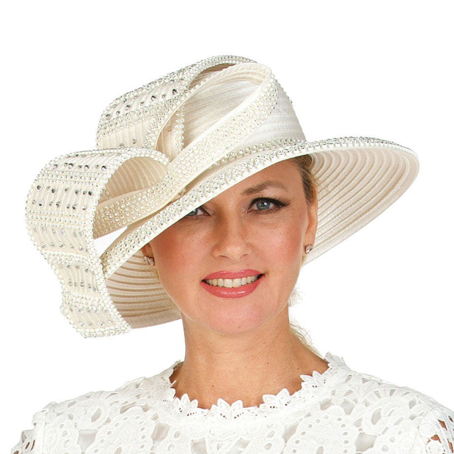 Introducing the exquisite Giovanna HR22130-OFW, a church hat that exudes both elegance and sophistication. Meticulously crafted to complete any Sunday service or special occasion attire, this hat stands out with its timeless wide brim design, offering not only style but also shade from the sun.