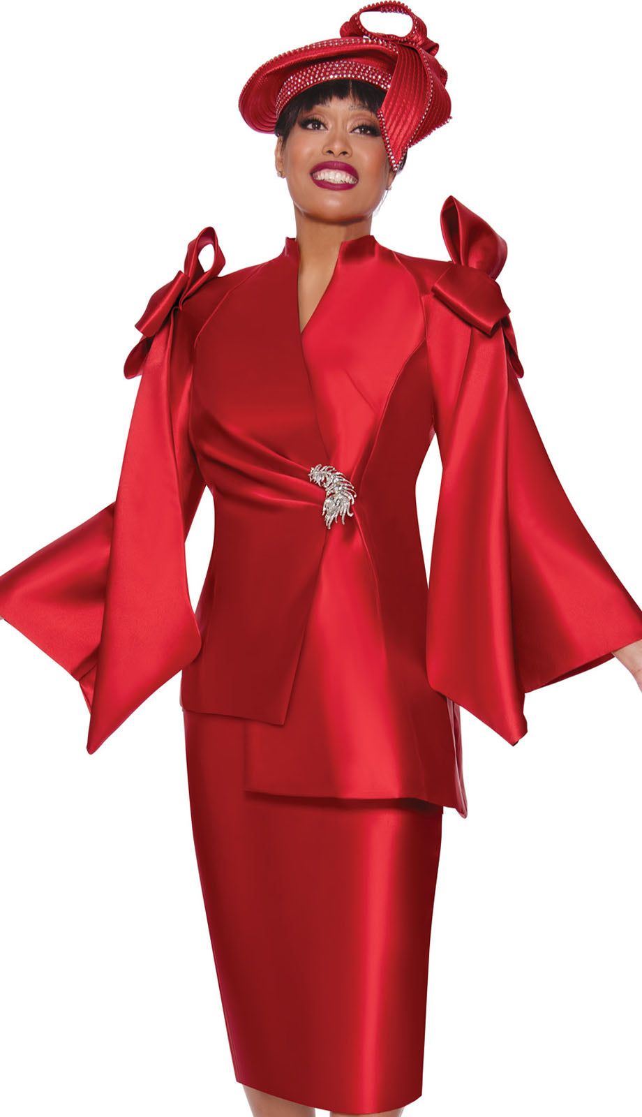 The GMI 9992-RED-QS Womens Church Suit is designed with elegance and style in mind, making it a perfect choice for church gatherings and formal events. The vibrant red color exudes confidence and grace, ensuring you stand out in any setting.