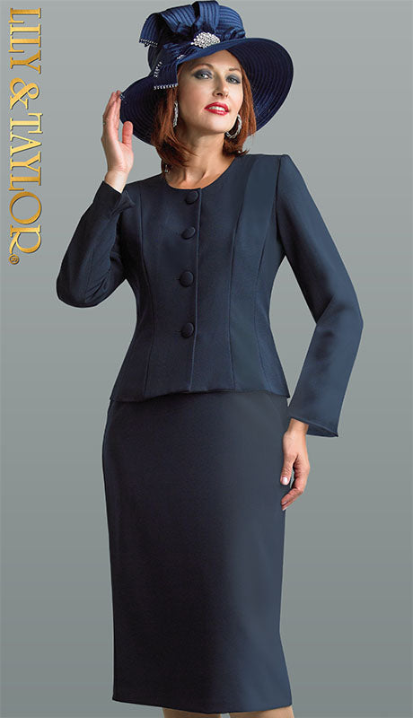 Introducing the Lily And Taylor 2920-NVY Church Suit, a testament to timeless fashion designed for the modern woman. This sophisticated suit is rendered in a classic navy blue shade, an essential for any elegant wardrobe. The high-quality fabric blend ensures both comfort and style, promising to serve as your favorite go-to outfit for various occasions.