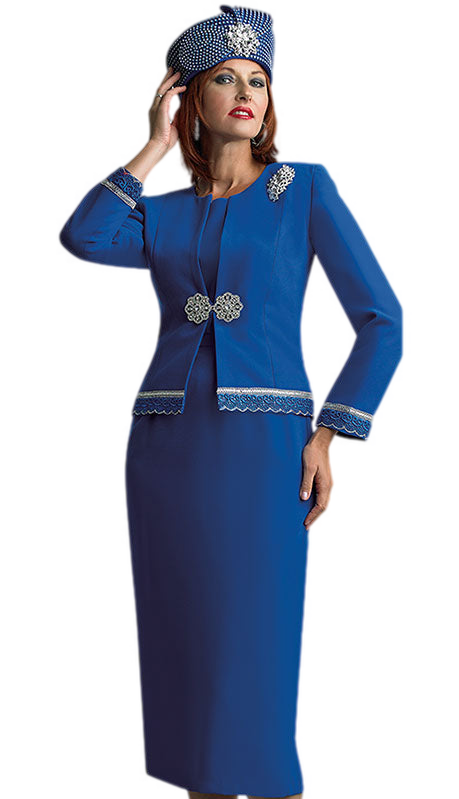 With its three-quarter length sleeves, the jacket offers a functional yet fashionable component, allowing for ease of movement while still retaining a sense of formality. This suit is an ideal choice for women who appreciate the balance between traditional style and modern design elements. Whether attending a church service, a wedding, or a formal gathering, the Lily And Taylor 4272-RYL Church Suit stands as a beacon of sophistication and poise, without the need for additional accessories like hats. Embrace the unparalleled elegance and make a lasting impression with this exquisite church suit.