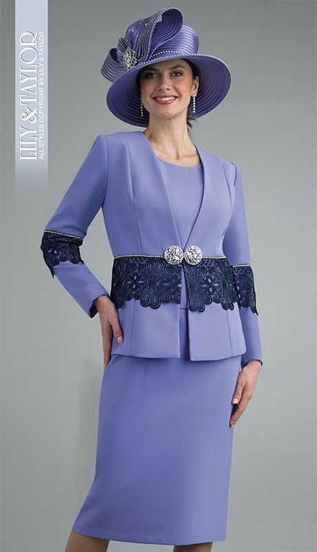Centerpiece to the jacketâs design are the exquisite jewel buttons, shimmering subtly and providing a focal point that is both eye-catching and tasteful. Whether attending a special service, a formal event, or any occasion that calls for a touch of sophistication, the Lily And Taylor 4636-LAV Church Suit stands as the premier choice for women who seek to make a dignified and stylish impression. This suit promises to be a cherished addition to any wardrobe, providing an unmatched level of beauty and quality.