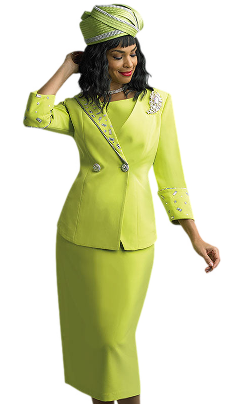While the suit is crafted to stand out on its own, it seamlessly pairs with a range of accessories, allowing for personalization of the final ensemble. Whether attending a service, wedding, or any formal gathering, the Lily And Taylor 4638-KIWI Church Suit is a distinguished choice that celebrates sophistication and grace.