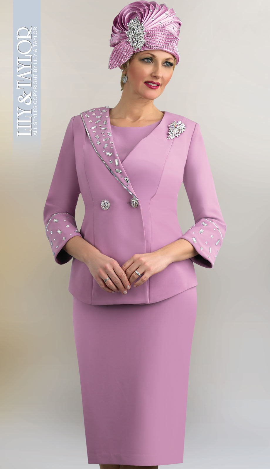 The Lily And Taylor 4638-ROSE-QS is a beautifully designed 3-piece womens Sunday suit that exudes elegance and style. Made from high-quality peachskin fabric, this suit is not only comfortable but also perfect for all-day wear, whether you're attending a service or other special occasions.