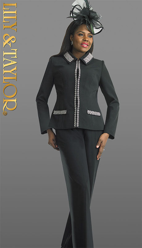 Lily And Taylor 4783-BLK Church Pant Suit-Hat