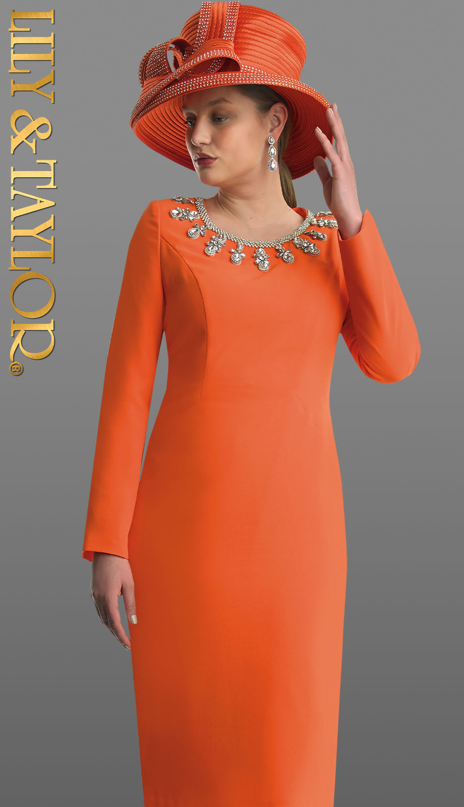 Introducing the latest addition to our exquisite accessory collection â the Lily and Taylor 4787-ORG Church Hat. This beautifully crafted hat is the embodiment of grace and class, making it a must-have item for any woman looking to elevate her attire for church, weddings, or any upscale social gatherings. With its vibrant orange hue, this hat empowers you to make a statement while paying homage to traditional sophistication.
