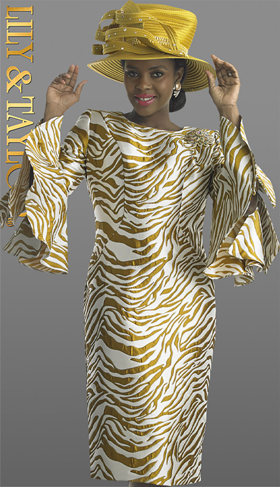 Lily and Taylor 4858-GLD Church Dress-Hat