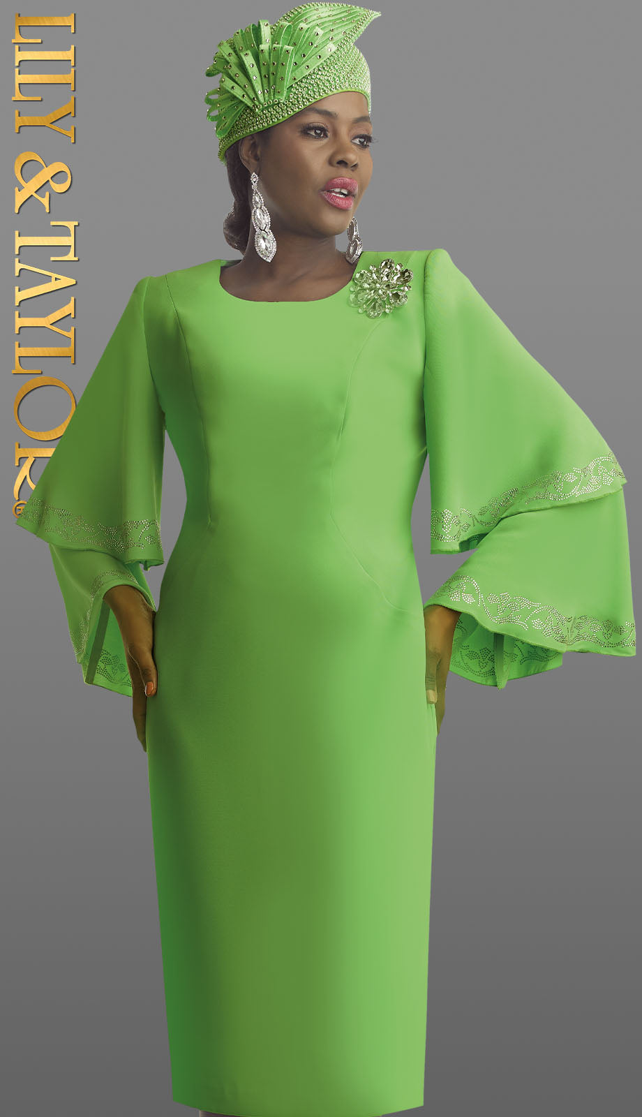 The Lily and Taylor 4878-GRN is the epitome of grace and style, tailored for those who seek elegance and distinction in their apparel. This ensemble is not merely a garment but an expression of poised fashion, selected by the discerning individual for special events such as church ceremonies, weddings, and other prestigious gatherings. With its vibrant green hue, it sets a tone of regal charm and freshness, perfect for all seasons and festivities.