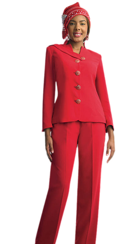 The jacket is tailored to perfection, featuring subtle but stylish button detailing that adds a touch of character without overpowering the garment. Its sleek design is matched with a pair of elegantly cut pants that offer freedom of movement while maintaining a sharp, structured look. Whether stepping into a place of worship or attending a formal function, the Lily And Taylor 4892-RED Church Pant Suit ensures you do so with grace and elegance.