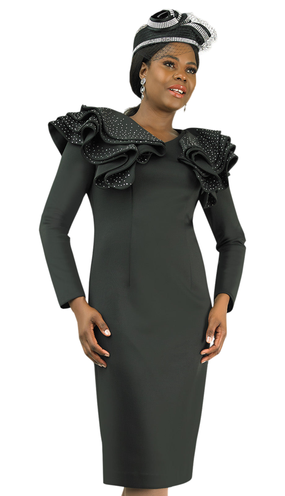 Introducing the Lily And Taylor 4900-BLK Knit Ladies Church Dress - a testament to classic elegance and contemporary style. This beautiful one-piece dress brings sophistication to your church and event attire, boasting a design that's both modest and eye-catching. Crafted from a solid color knit fabric, this dress presents itself with a flawless finish suitable for various seasons and settings.