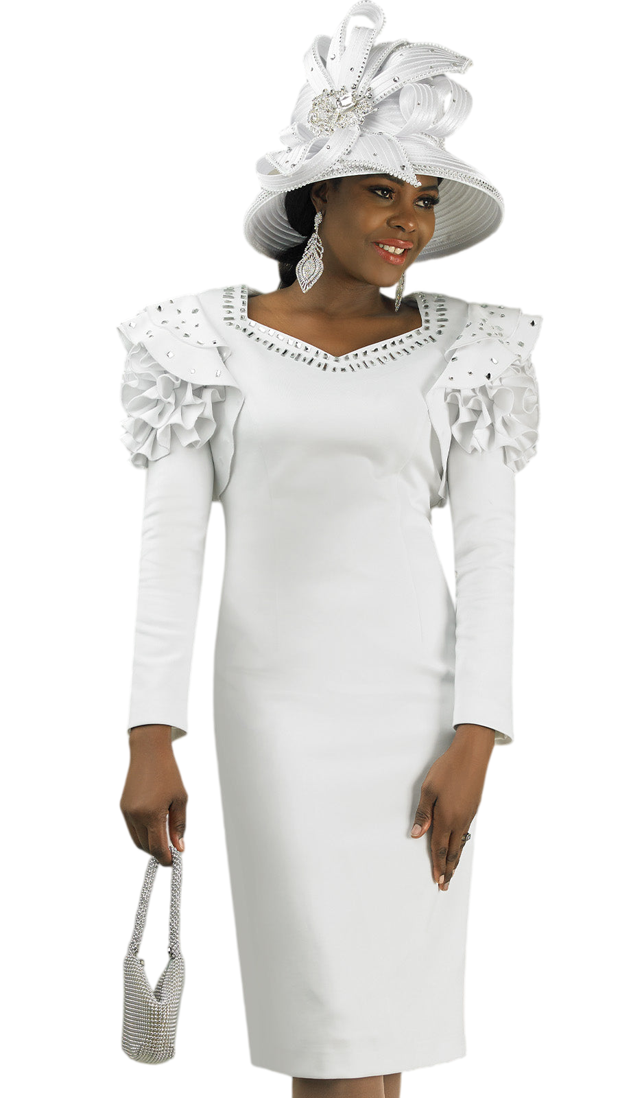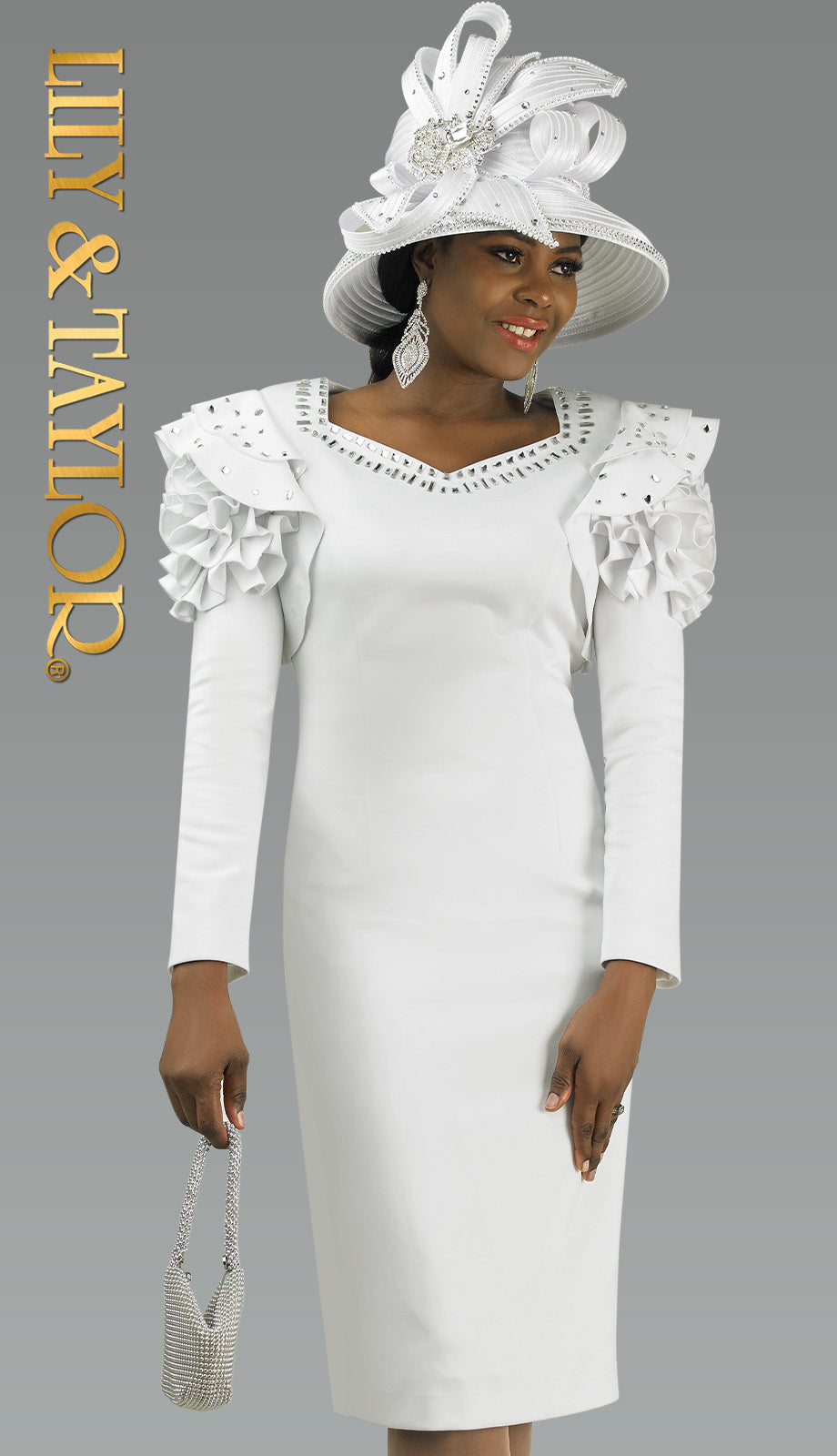 Introducing the Lily And Taylor 4903-WHT-H Hat â the perfect finishing touch to any refined and sophisticated outfit. This luxurious hat is crafted with quality materials designed to provide both comfort and a lasting impression at any high-profile event. From the subtle accents of rhinestones that catch the light just so, to the exquisite design that exudes class, this hat stands out as a centerpiece of fashion-forward accessories.
