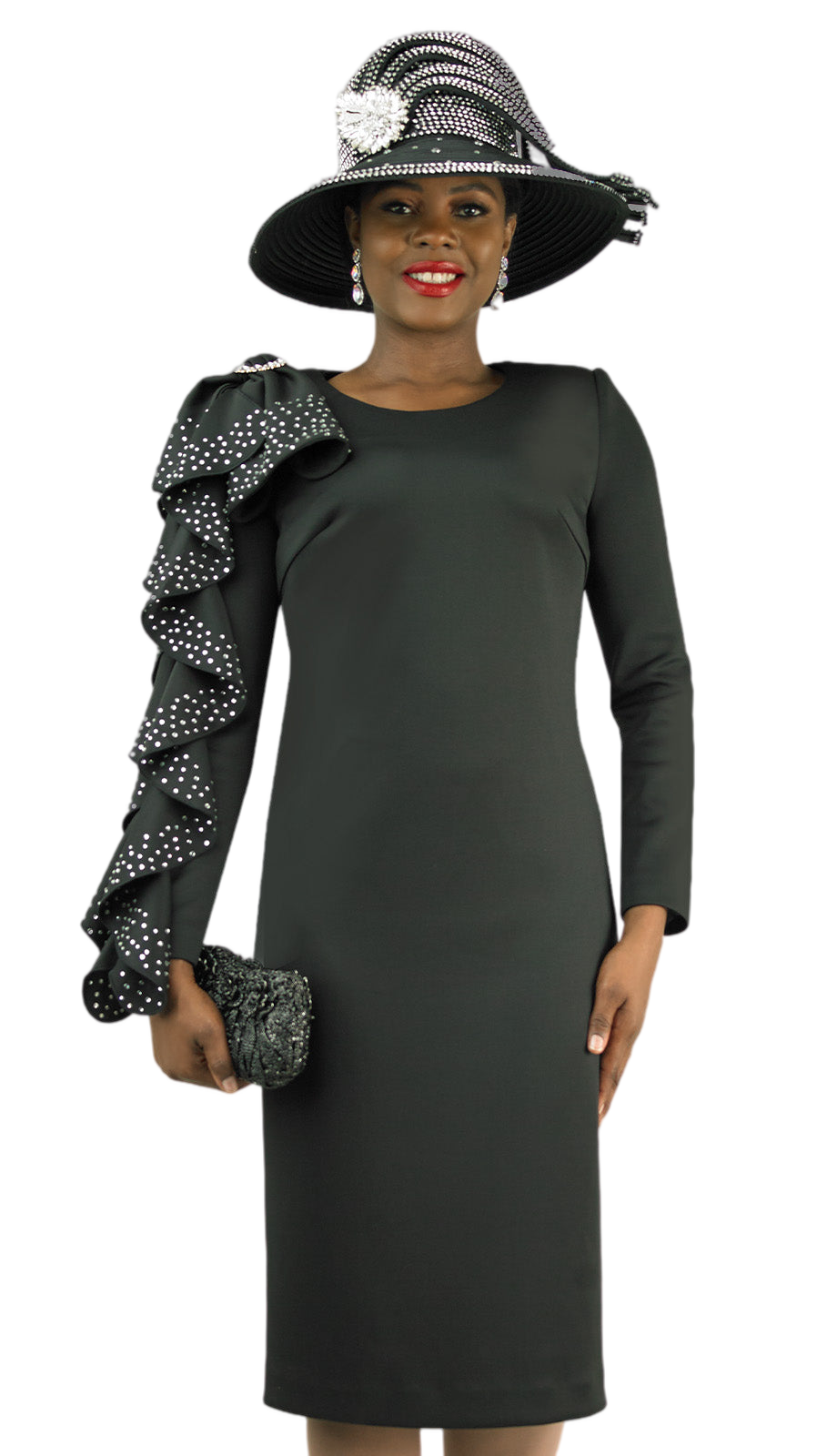 Moreover, this ensemble is crowned with a statement hat that boasts a floral accent, offering an air of opulence and allure. The hat not only complements the outfit but also provides a stunning focal point that is sure to garner attention. Whether you're attending a wedding, a formal gathering, or a church service, the Lily And Taylor 4907-BLK-QS ensures you arrive with impeccable style and confidence.