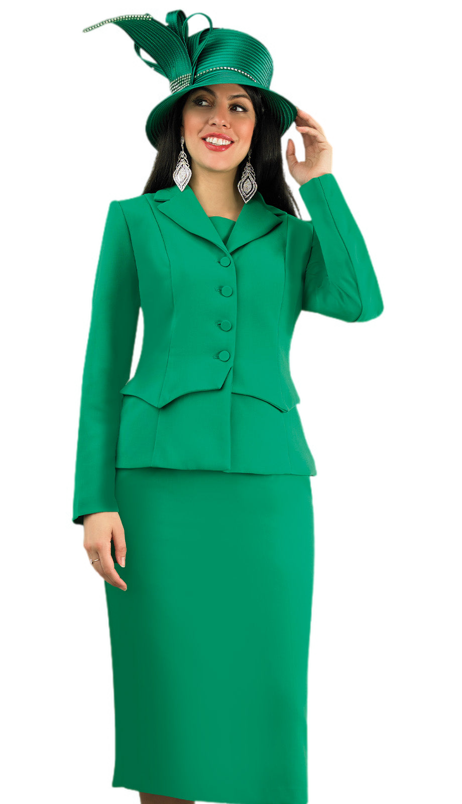 The striking Emerald hue of the suit resonates with poise and grace, making it a standout choice for a variety of formal events, such as church services, weddings, or upscale gatherings. The jacket features a modern peplum silhouette accented with carefully placed decorative buttons which add a touch of sophistication to the overall design, while ensuring a flattering fit for all figures.