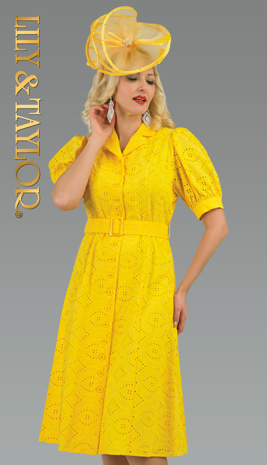 The Lily And Taylor 4990-YLW dress is a stunning addition to any wardrobe. This eye-catching yellow dress is designed to turn heads at any event. Featuring a belted waist, it provides a flattering silhouette that accentuates your figure beautifully. The stylish puff sleeves add a touch of femininity, enhancing the overall elegance of the dress.